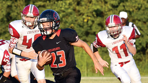 We had some adversity in the game, but our boys played through. Trevor Anthony stepped up big time along with Damian Walker and Blake Kendall to play dominating defense at times. Louisiana is a good team, I know people outside of the stadium think they are the same old same old, but I believe they will win more than one game this year if they continue to improve. They have a quality team, they just lack depth. Their kids played their hearts out, and I respect all of them for that. Shawn Yates did a great job on offense. I have to try and remember that he is only a sophomore. We had many sophomores and a couple of freshman step up Friday. We dealt with some injuries early and that caused our offense to stall in the second quarter. I am really proud of the way my teamed battled, regardless of the circumstances, and people may say what they want, but the IndianHawks are 1-0 with over half of the starters being underclassman.”