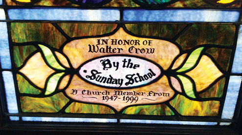 Proceeds of the fish fry taking place from 4 to 7 p.m. Friday, March 16, will go toward restoring the east windows, which include tributes to pioneer church members and a dedication to Walter Crow. As part of the restoration, Marilyn’s name is being added.