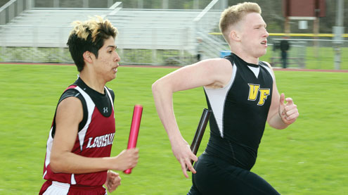 300 Meter Hurdles – Trevor Crider, VFHS, 1st, 42.78; Josh Hodde, VFHS, 2nd, 42.98; Noah Pafford, BGHS, 4th, 46.01; Austin Orf, BGHS, 5th, 47.40; Chad Bowen, LHS, 6th, 47.42; Stephen Gissenaas, SHS, 55.65.