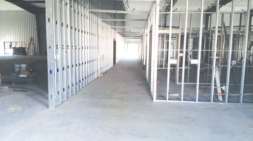 The majority of the exterior is complete and the installation of the exterior brick is starting. Internally, the walls have been framed and the electrical fixtures are being installed.