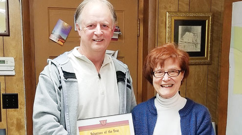 Clarksville Chamber of Commerce President Joanna Brock presented Ira Garner with the Volunteer of the Year award at the Board of Aldermen meeting on Dec. 20.