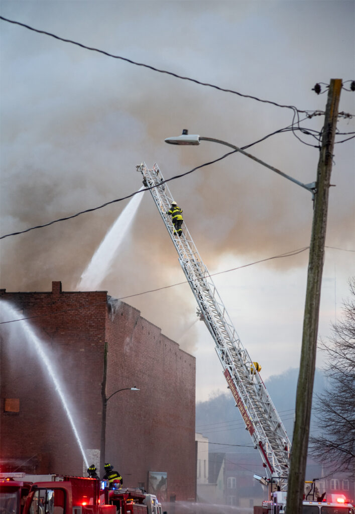 “Fire crews exerted all efforts to suppress the fire when the building began to deteriorate causing the roof and back wall to collapse,” Chief Quattrocchi continued. “After the collapse, two more fires were reported a block away from the initial incident on Main Street.”